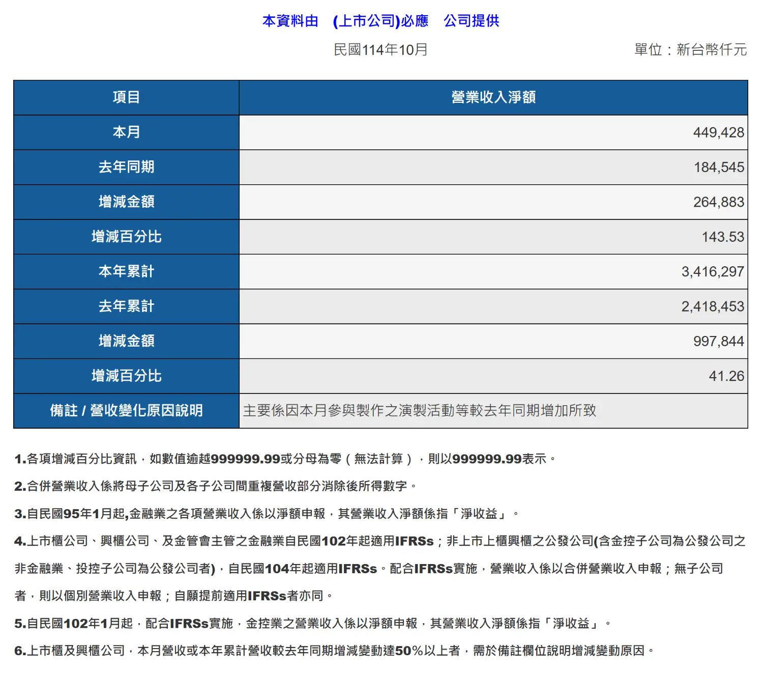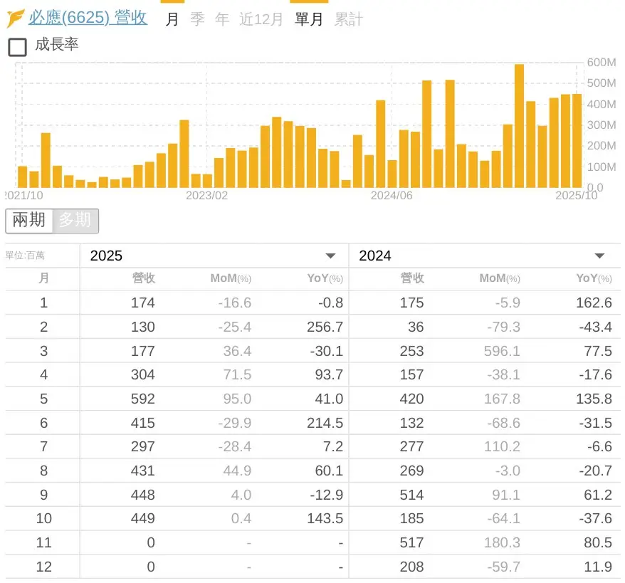 [情報] 6625 必應 10月營收 MoM 0.4% YoY 143.5%