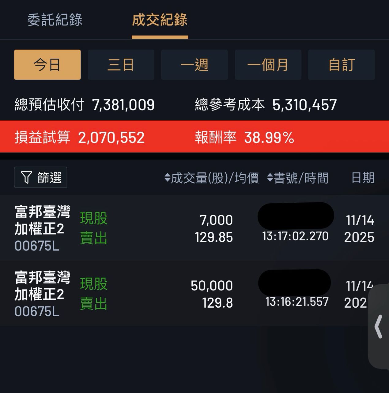 [標的] 00675L 臺灣富邦加權正二 獲利出場