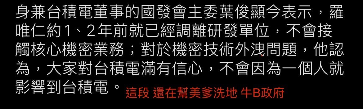 2奈米、A16、A14奈米及以下等最先進製程技術相關機密資料,有的起疑,認為非羅唯仁