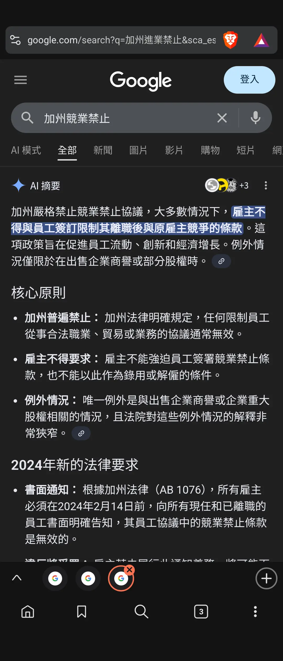 然後再搜尋一下明確了加州是競業禁止無效的州