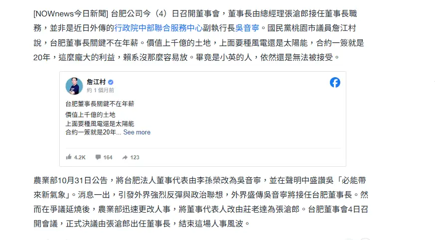 Re: [新聞] 從小白兔變大肥貓 台肥董座吳音寧上、李孫榮下