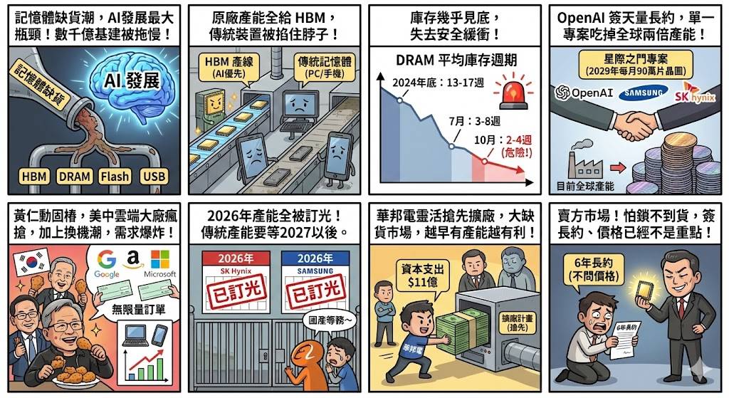 畫。從供給AI GPU 資料的高頻寬記憶體,缺到USB和手機FLASH快閃記憶體。幾千億美元