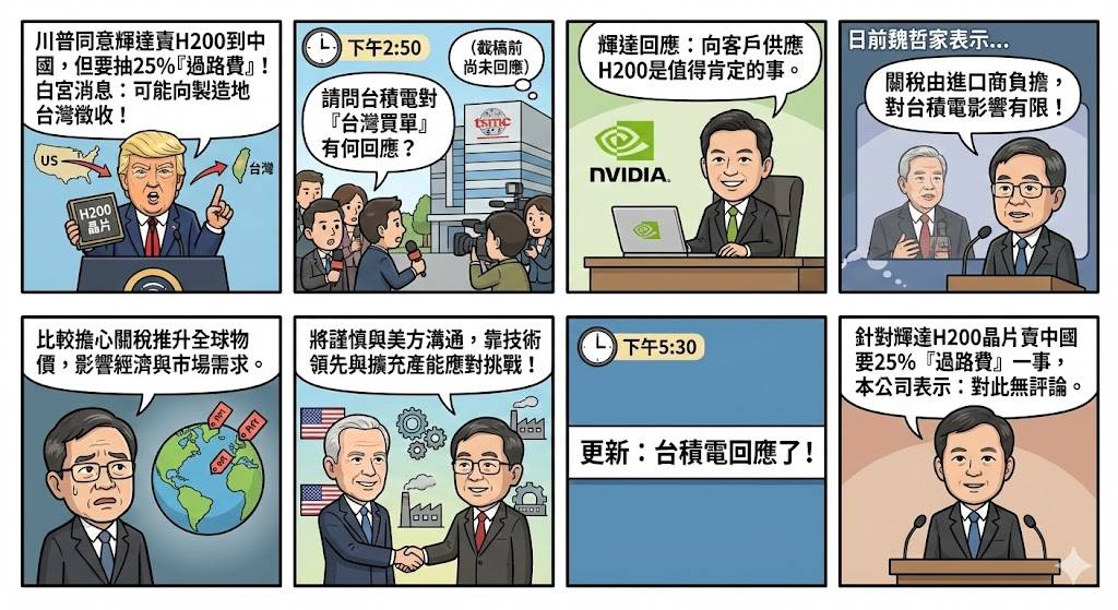 此次「輝達 H200 賣中國要付過路費」傳聞,雖尚未獲官方證實,台積電也針對外界關心