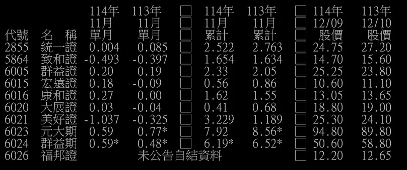 1. 標題:證券、期貨公司 114年11月自結 eps