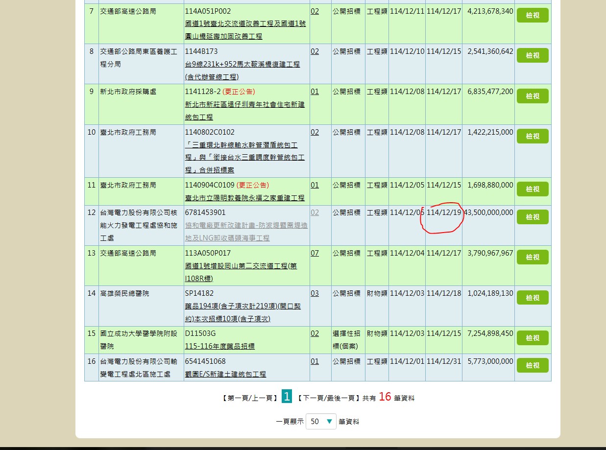 大型工程標案,前期準備時間都很長,四接有沒有得標對工信明年的財報沒有幫助。