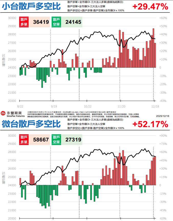,儘管11月平均股價指數高達27,464點,仍創下史上新高水準,但市場關注的「散戶風向