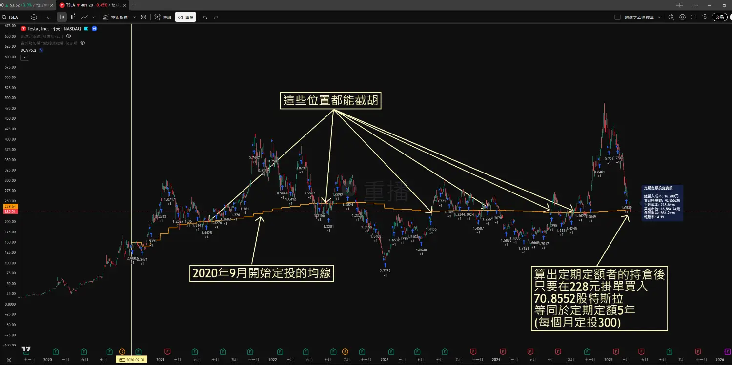 這意味著,如果你計畫每個月有300美元預算用於投資特斯拉,在2025年下跌這段期間,