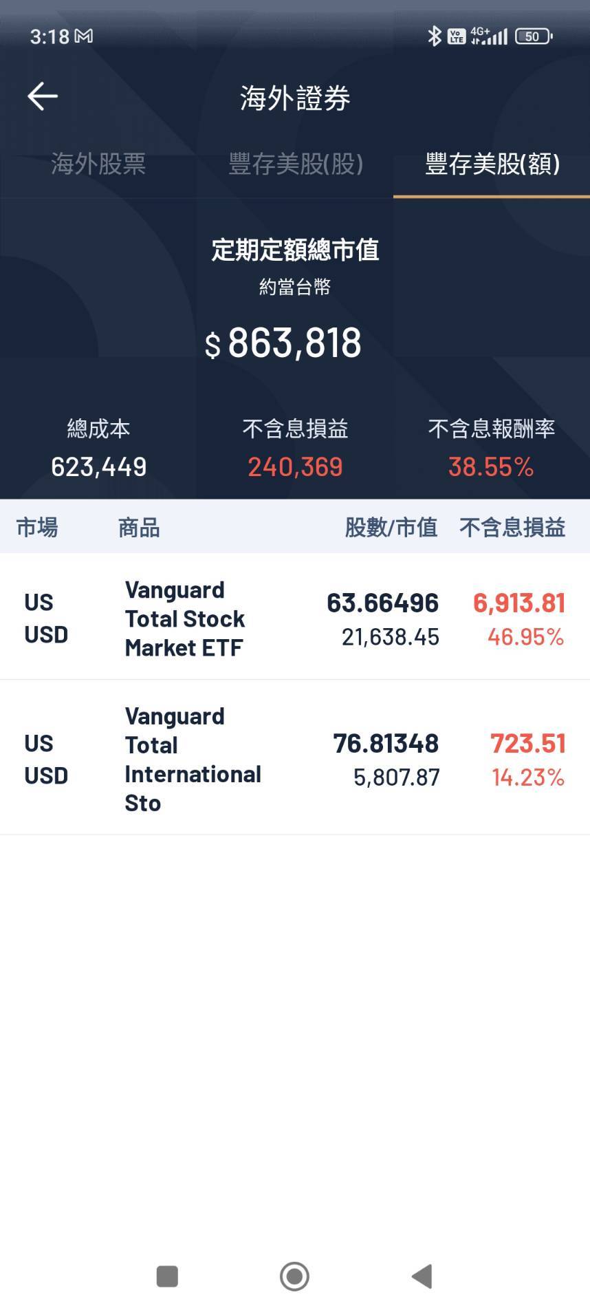 加重VXUS的比例.以及持續投資VTI.我覺得美股的表現依然強勁.但是會再加重VXUS的比例