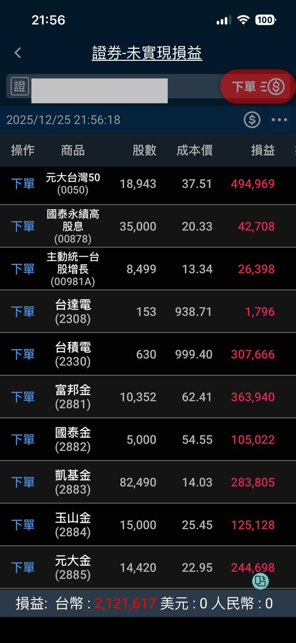 原本之前的投資都是買金融股跟高股息居多,去年跟今年賣掉一些高股息轉買0050跟台積
