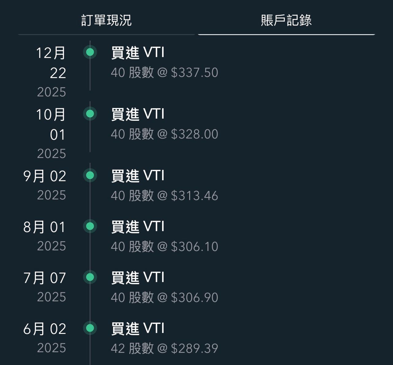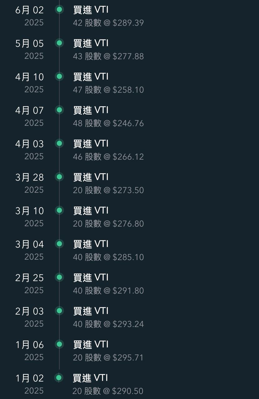 VTI月初定投US$12,000,價格超過$300/股就改成固定買40股