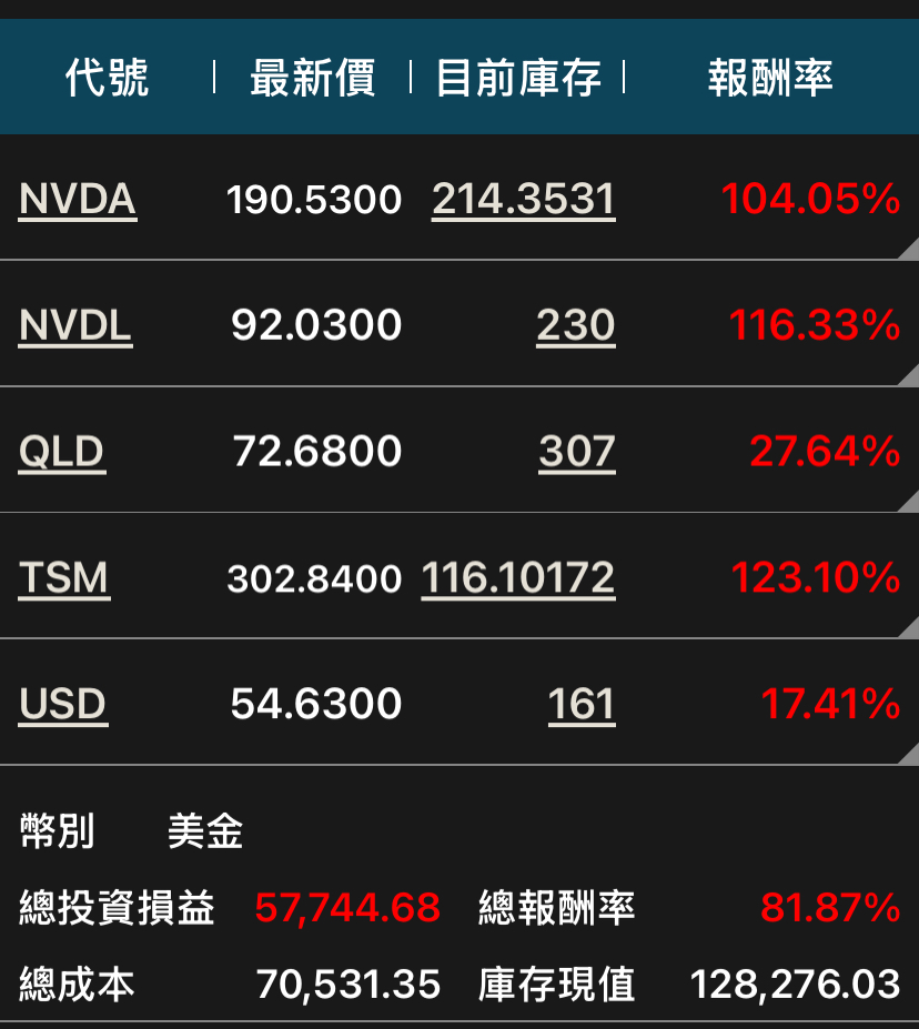 有撿一些NVDL、QLD、USD和00675L。