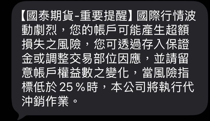 應該大家有開期貨戶的應該都有收到簡訊通知
