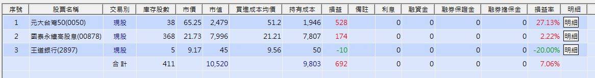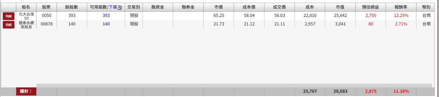 (之前分散在兩個不同帳戶買,目前還沒有打算匯撥整理)