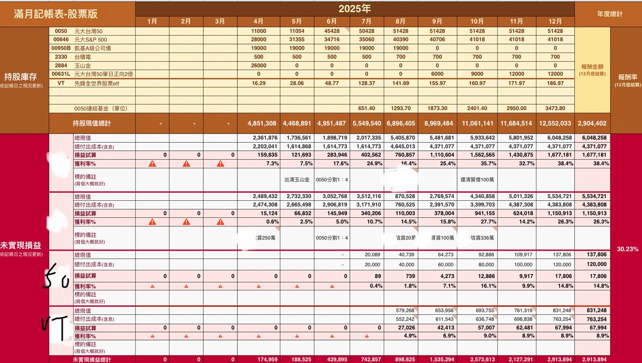 今年跟上多頭,總報酬大概NTD290萬,報酬率30%。