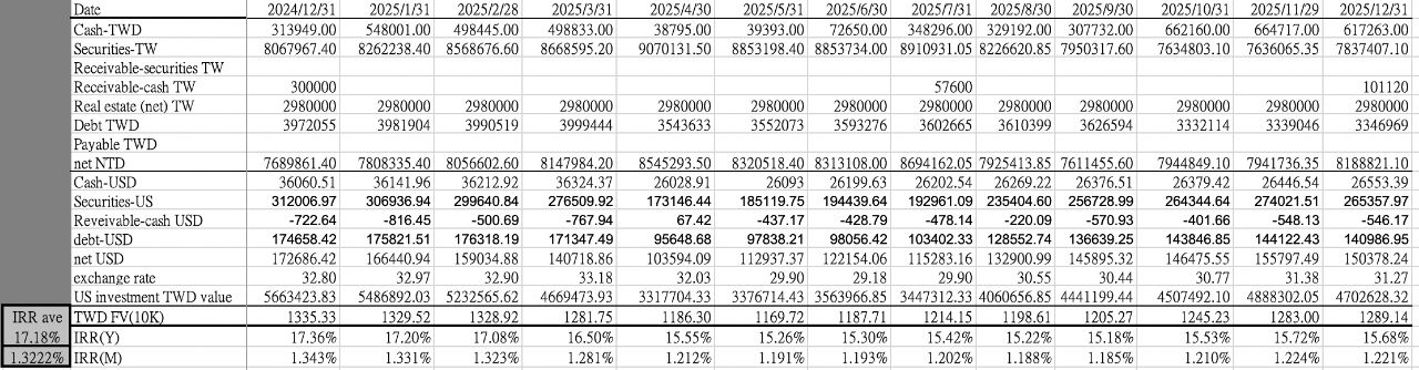 註:以上 cash flow 算出來為月IRR, 再以 (1+月IRR)^12-1轉換得年化IRR