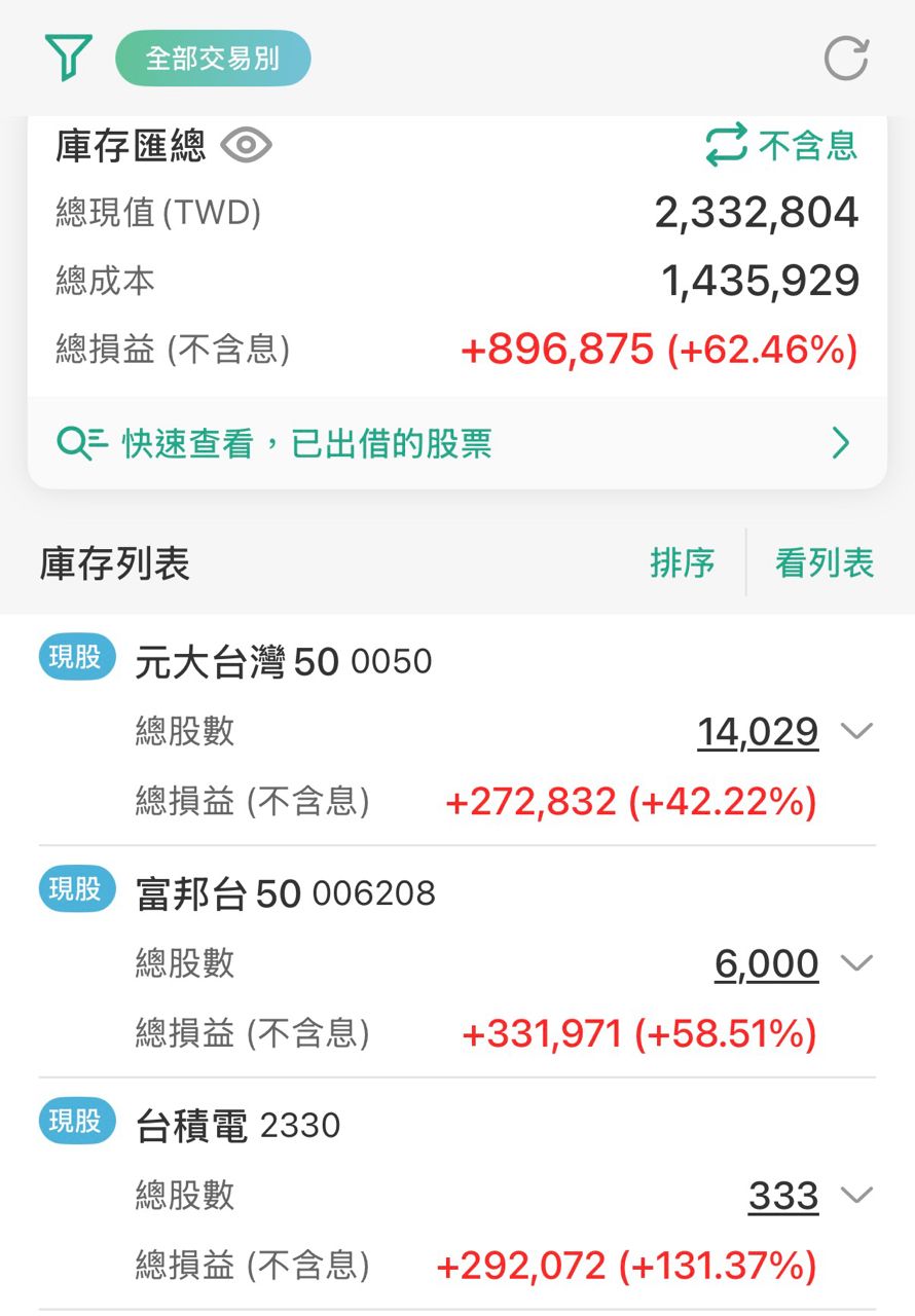 本身的股票資產有台股跟美股共三個戶頭