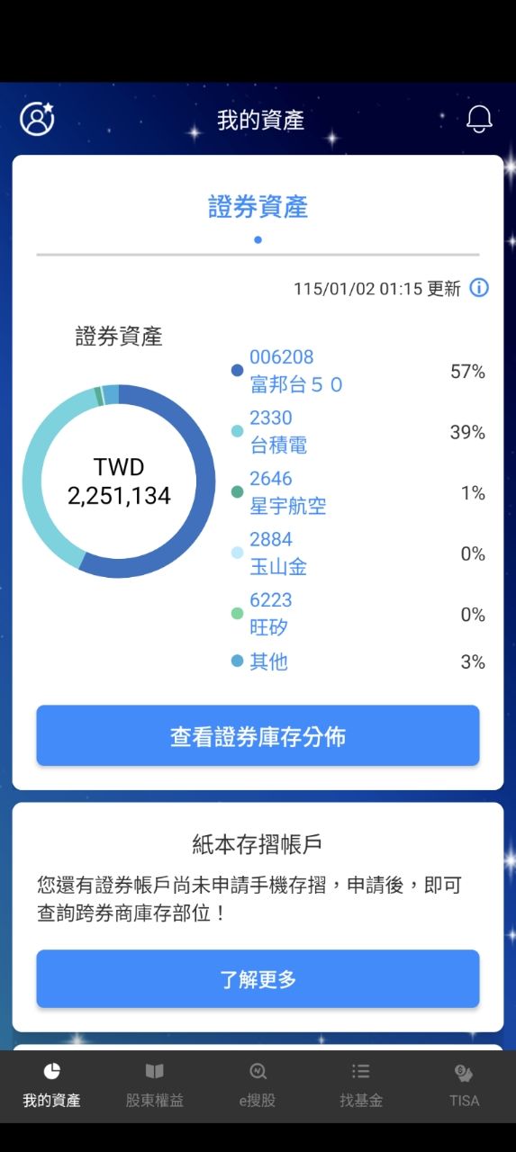 全部都存入他的證券交割戶,買0050放著不動