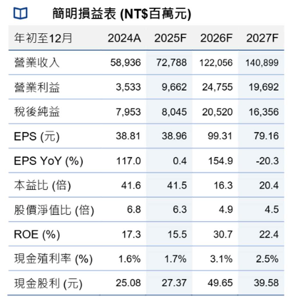 評級,目標價由1600元,一口氣調升400元來到2000元,並預估2026年EPS高達99.31元。