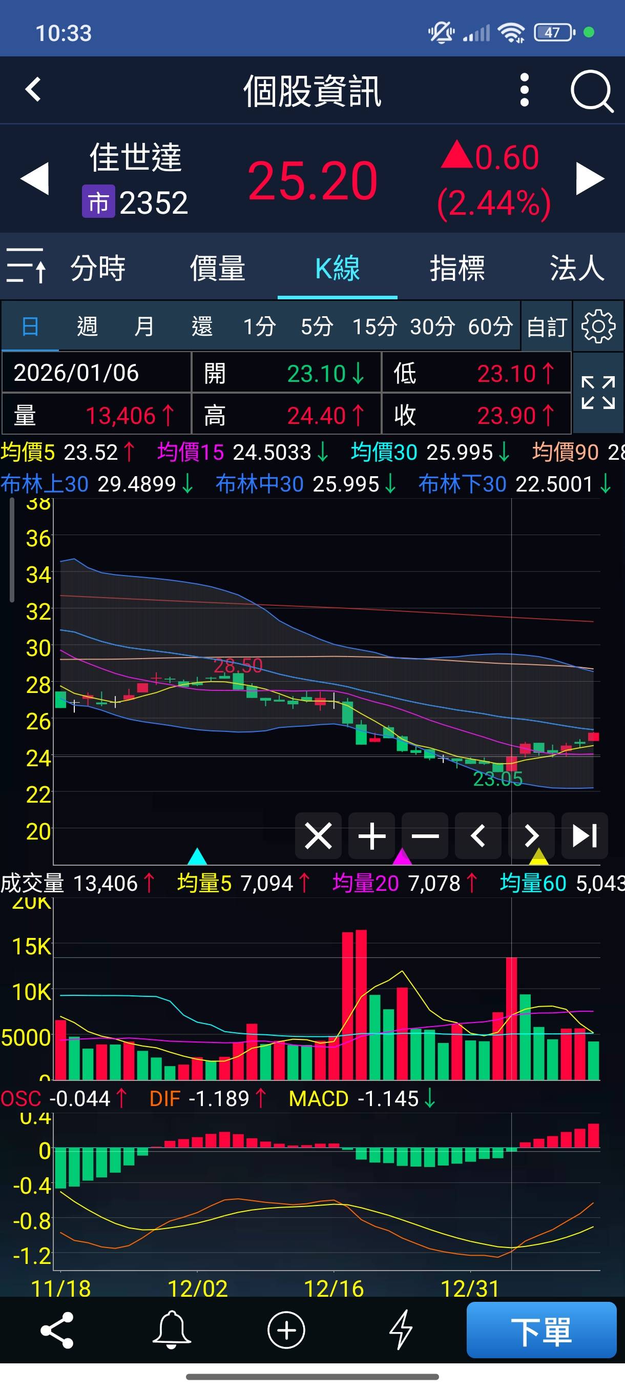 去年10月7日現金減資18%後,股價從高點36一路跌到最低23.05,慘