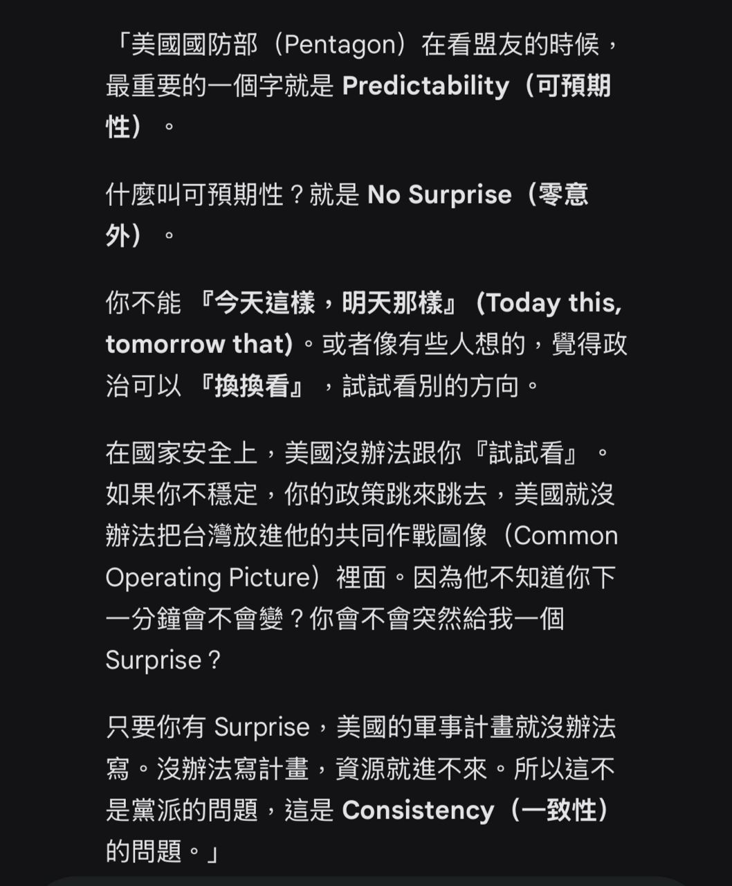 這是五角大樓退休官員來台的談話