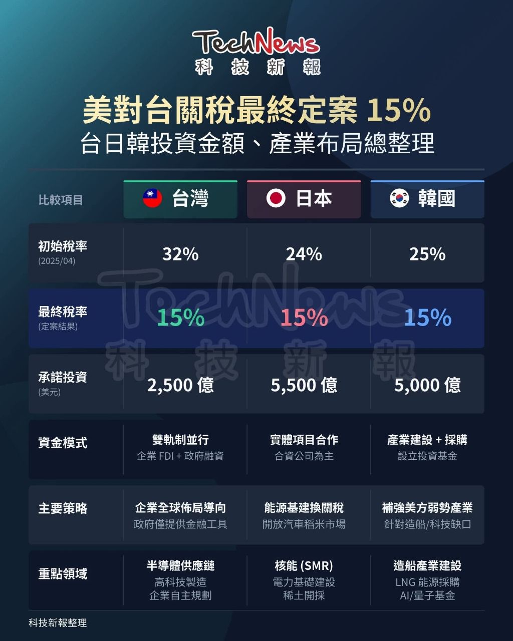 此外將以「台灣模式」由企業自主對美投資2,500億美元,另政府信用保證最高2,500億美
