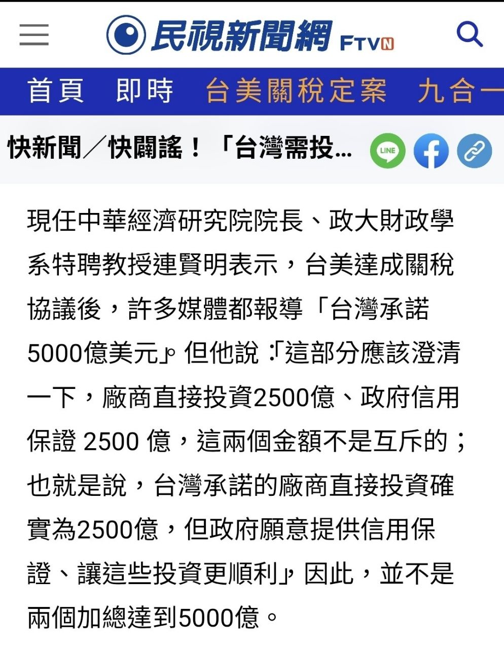 [新聞] 企業加碼+政府信保 我投資美5,000億美元