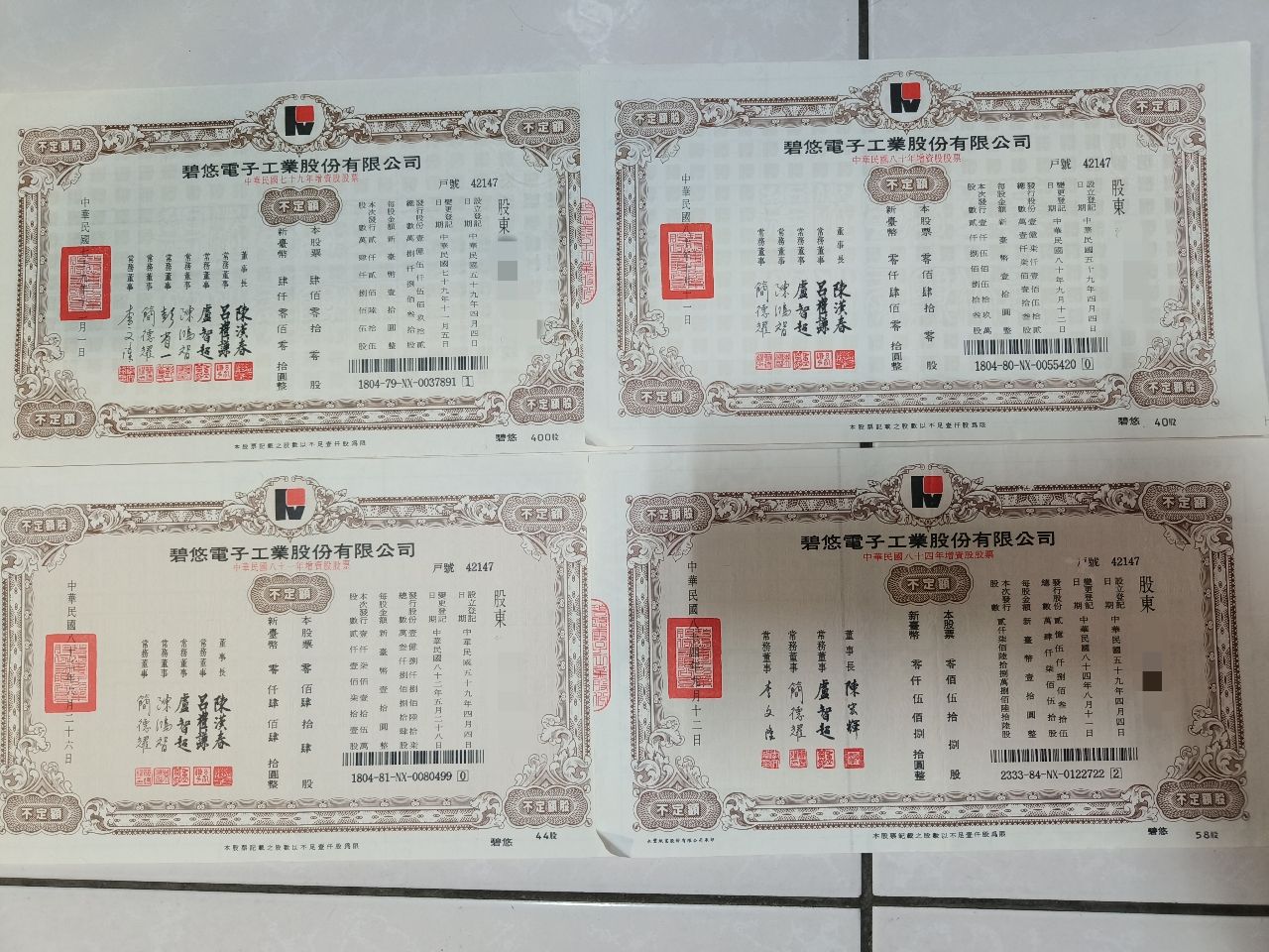 翻出幾張實體股票
