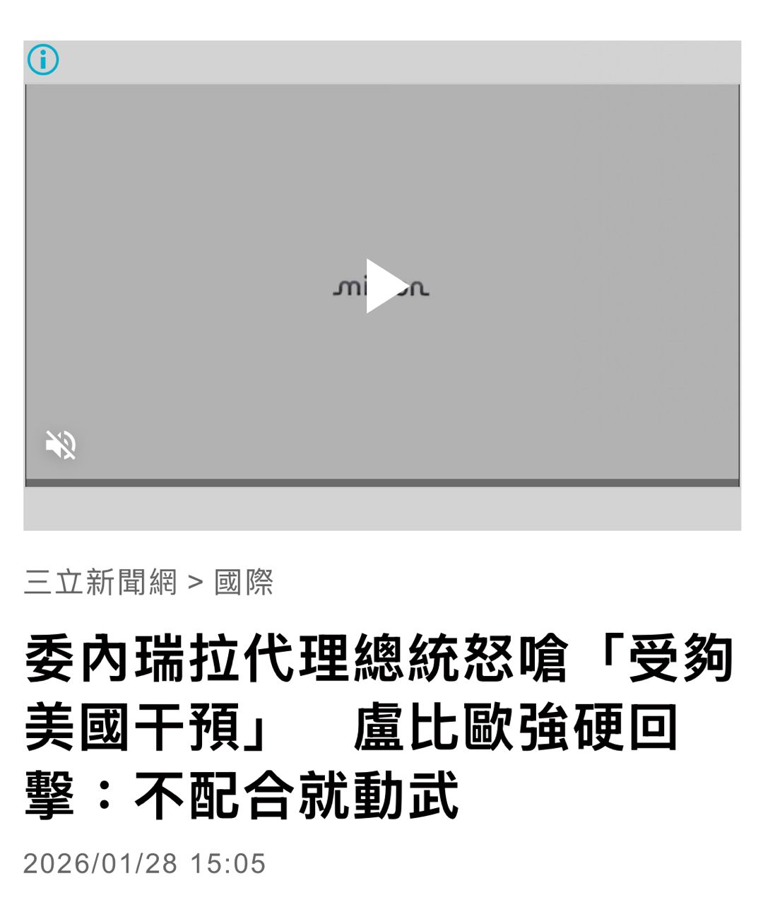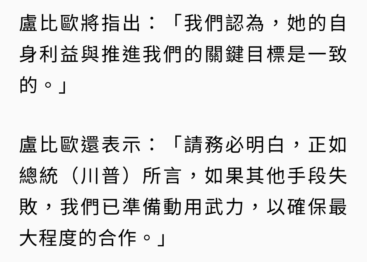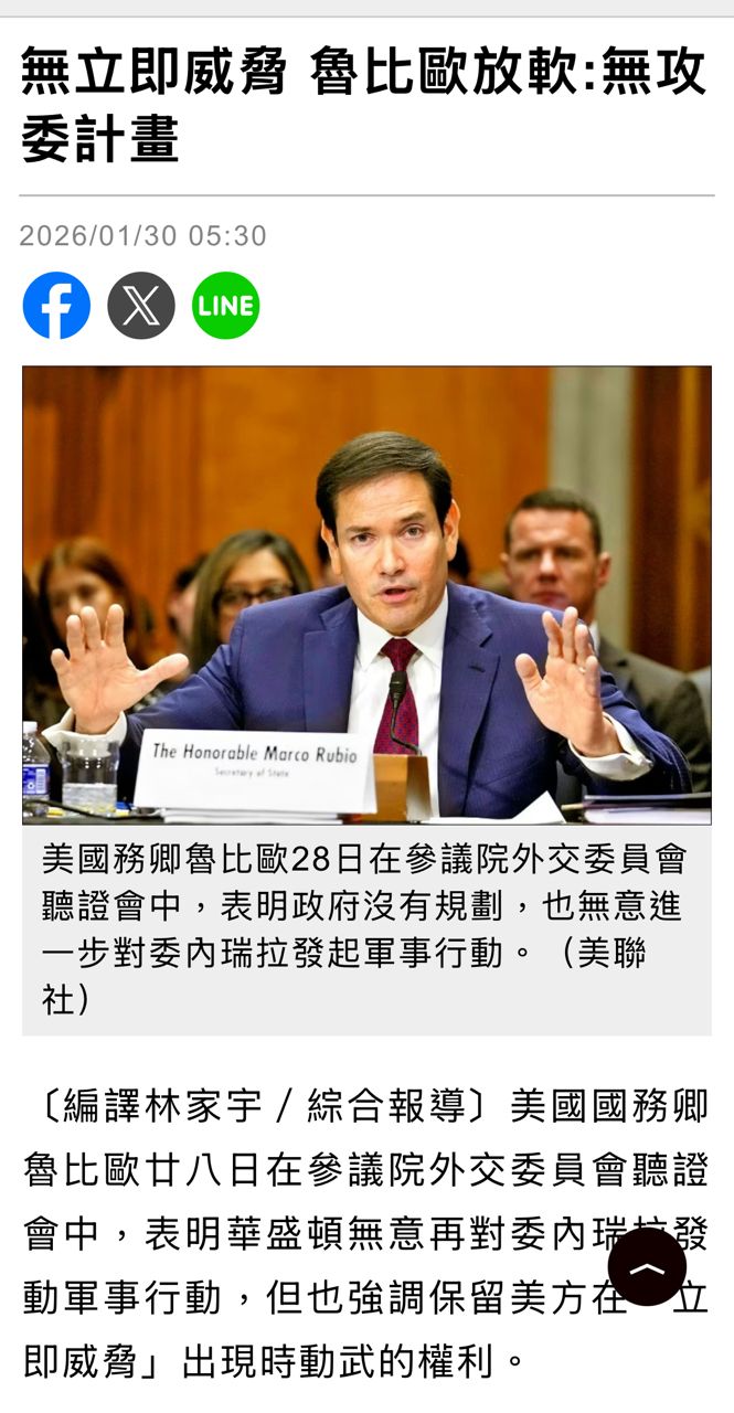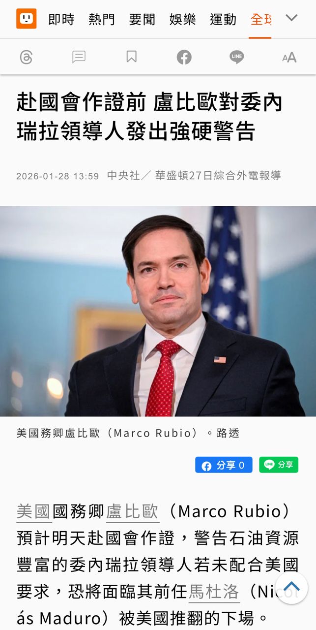 : 盧比歐前天威脅委內瑞拉目前代總統,說如果你不支持美國,我們就再推翻你們
