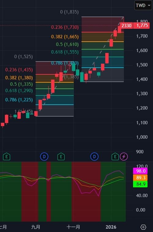 - 對照技術面 0.382 回測位 1,665,顯示短線回檔極具合理性。