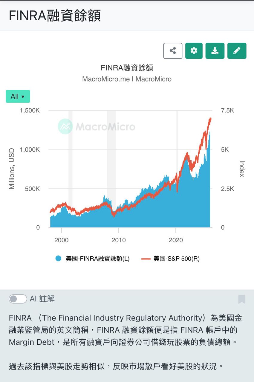 不只是台股,美股融資餘額頗高