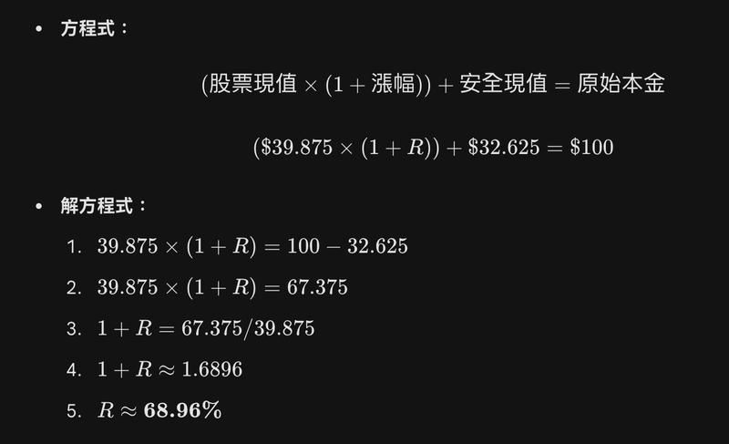 : 說明: 假設遇到比較明顯的下跌, 大盤跌了 25%, 原型回本需要漲 33%,