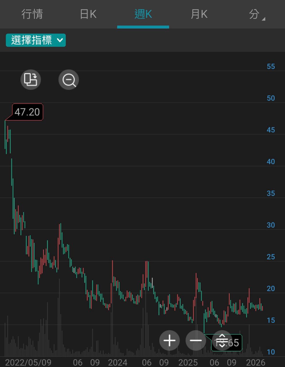日K格局:自2025/12至今多在17.5-18.2區間震盪,兩次一度觸及接近17位置,未有跌破