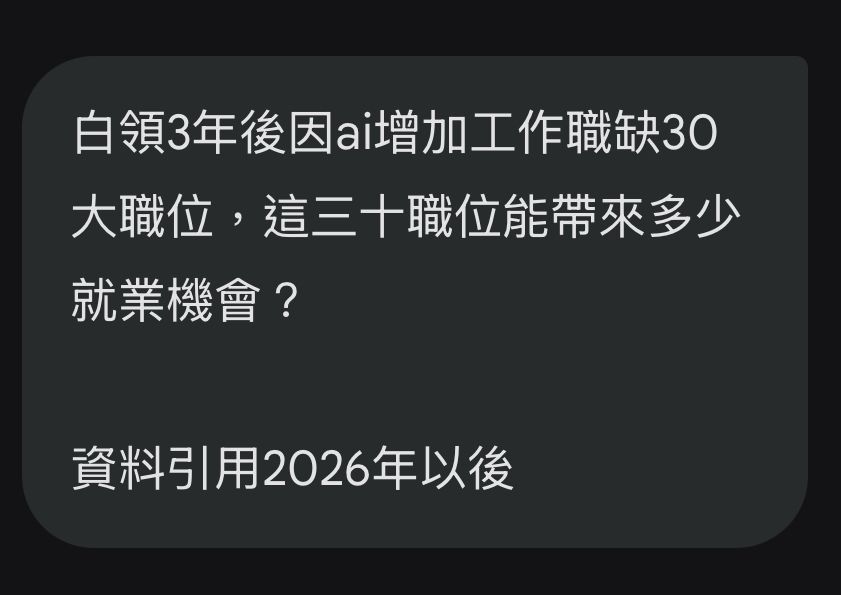 然後ai也能創造許多就業機會,大多跟程式相關,所以軟體工程師失業可能是暫時性的,