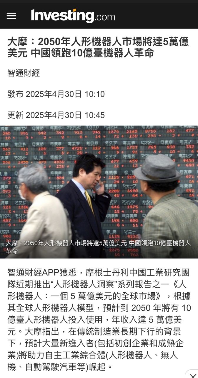 目前中國外的人形機器人大概是300萬台幣一台,中國的大概是80萬一台