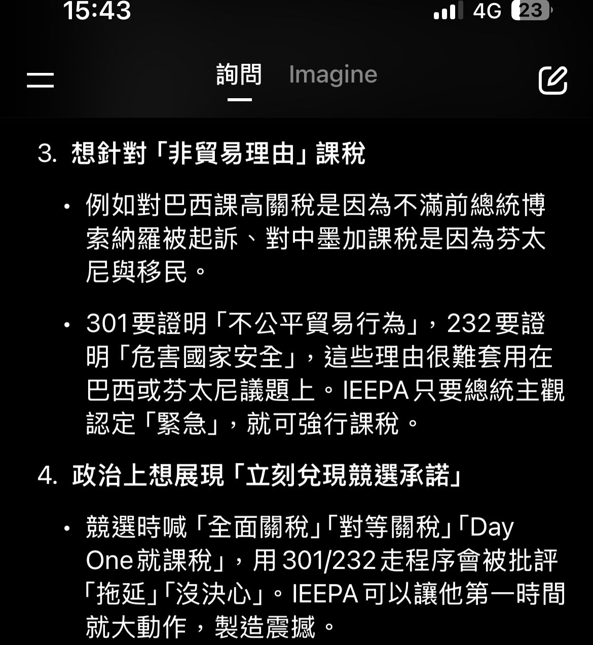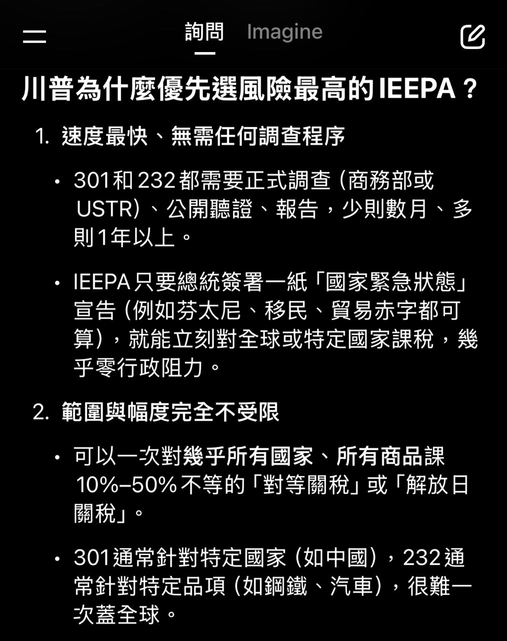 IEEPA可以以不滿巴西前總統被起訴來對巴西加關稅,其他的武器可沒辦法XD