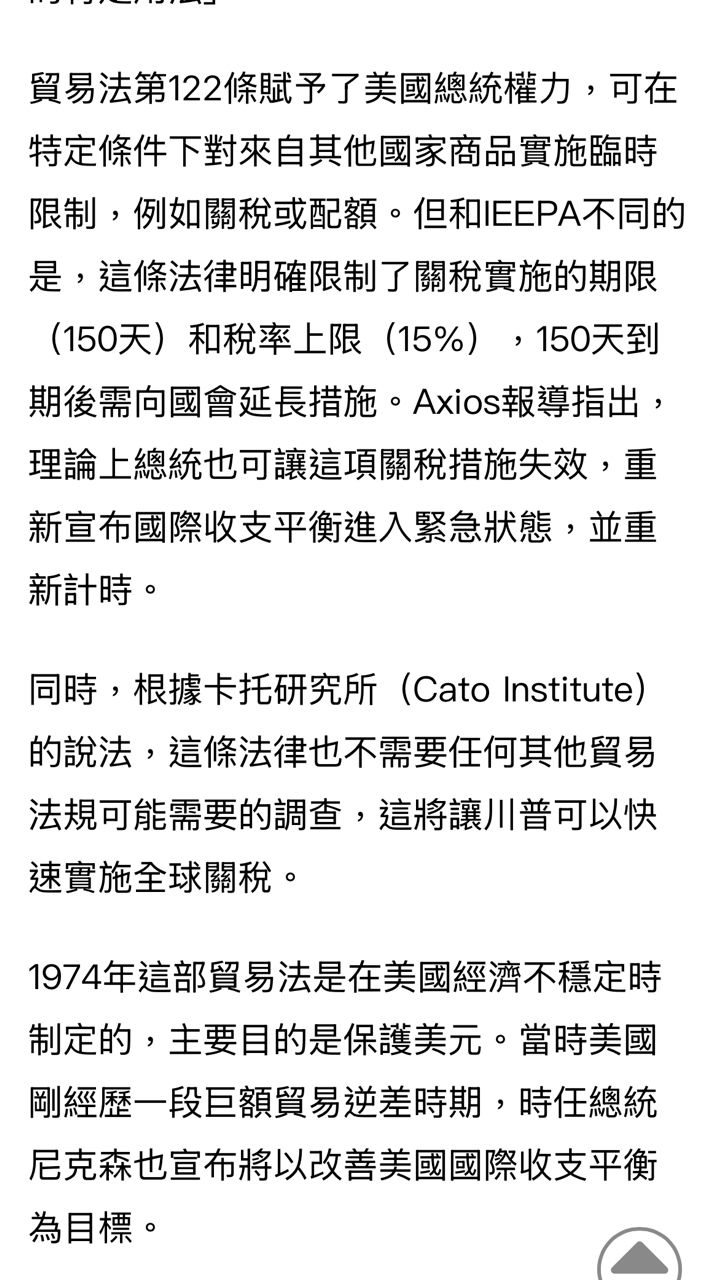 外媒判斷這招可以用奧步,就是不到150天總統宣布此項關稅措施失效