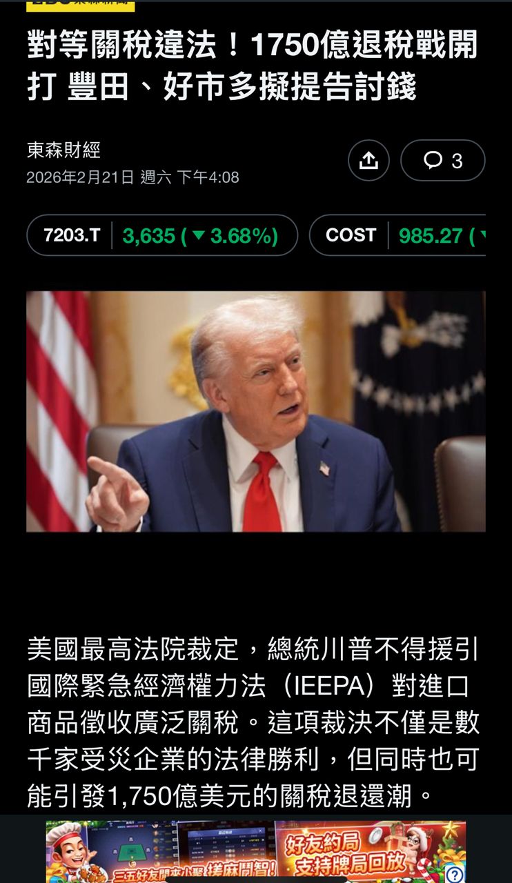 Re: [新聞] 快訊/美國海關宣布:自24日起停收「非法川普關稅」