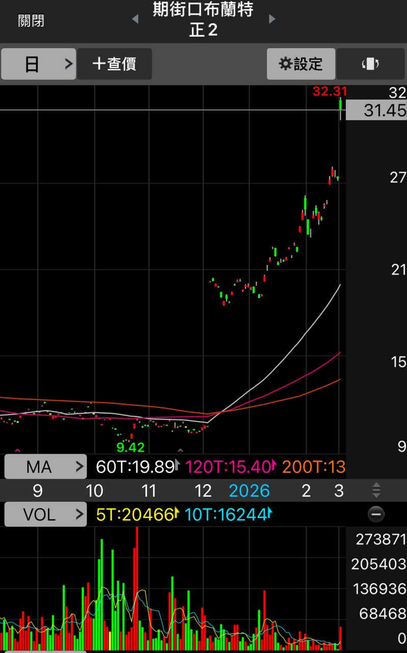 我最夯!期街口布蘭特正2 ETF 單日暴漲逾20%