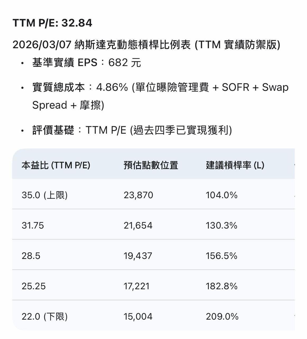 更新一下2026/03的動態槓桿檢查表