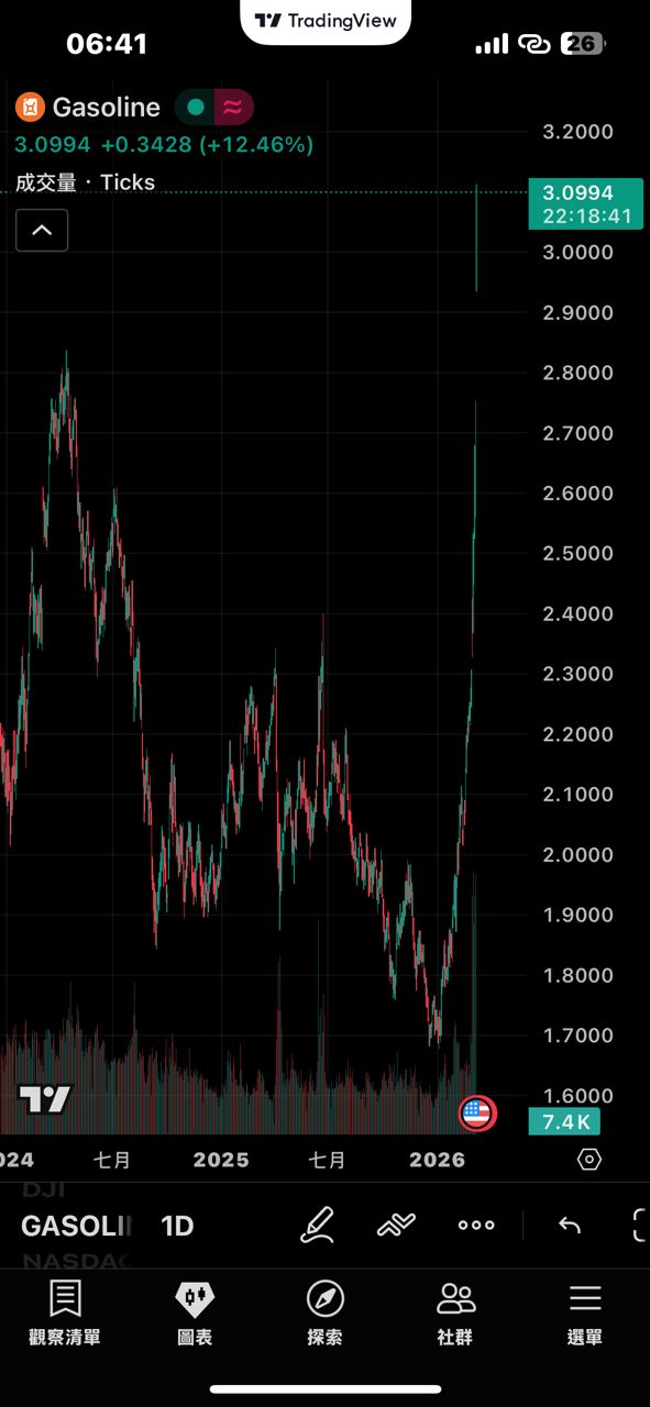 由於週一國際油價大漲,美國汽油再度迎來驚人漲幅,從2026年的底部僅8天幾乎翻倍。