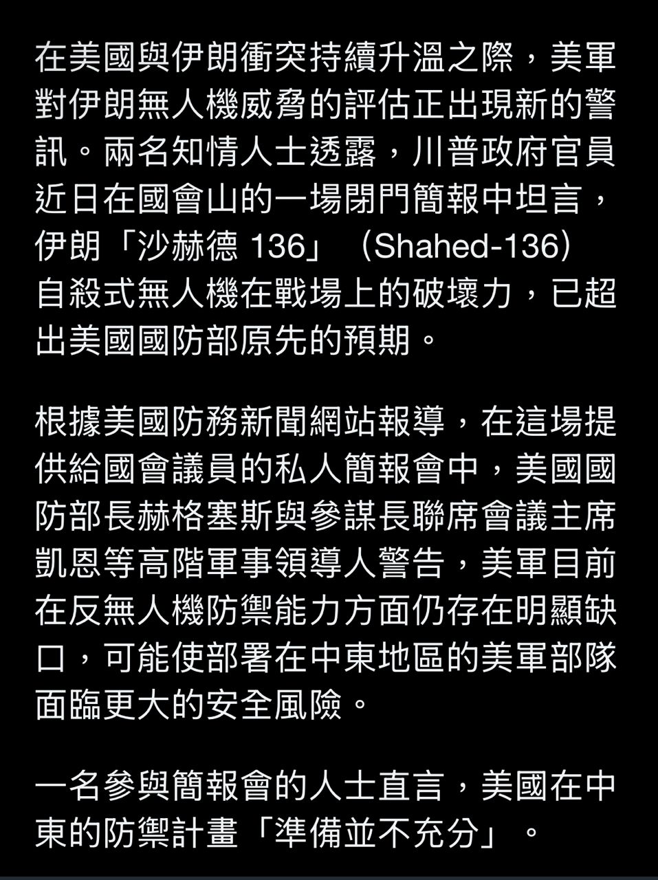 : 都受到嚴重削弱;他也指出,實際軍事進展早已超前原本預估的4到5週時程。