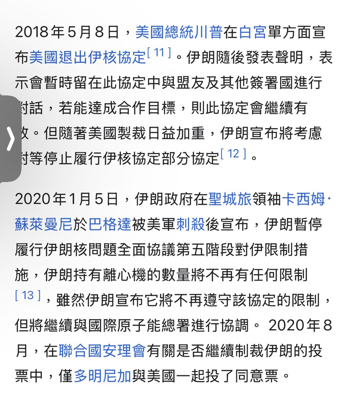2020年,川普政府刺殺聖城旅領袖蘇萊曼尼,伊朗宣佈退出伊核協議,但仍然願意接受國