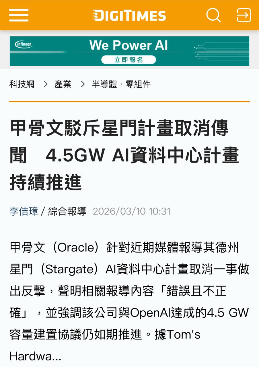 Re: [新聞] Oracle 和 OpenAI 終止擴建旗艦資料中心的計劃