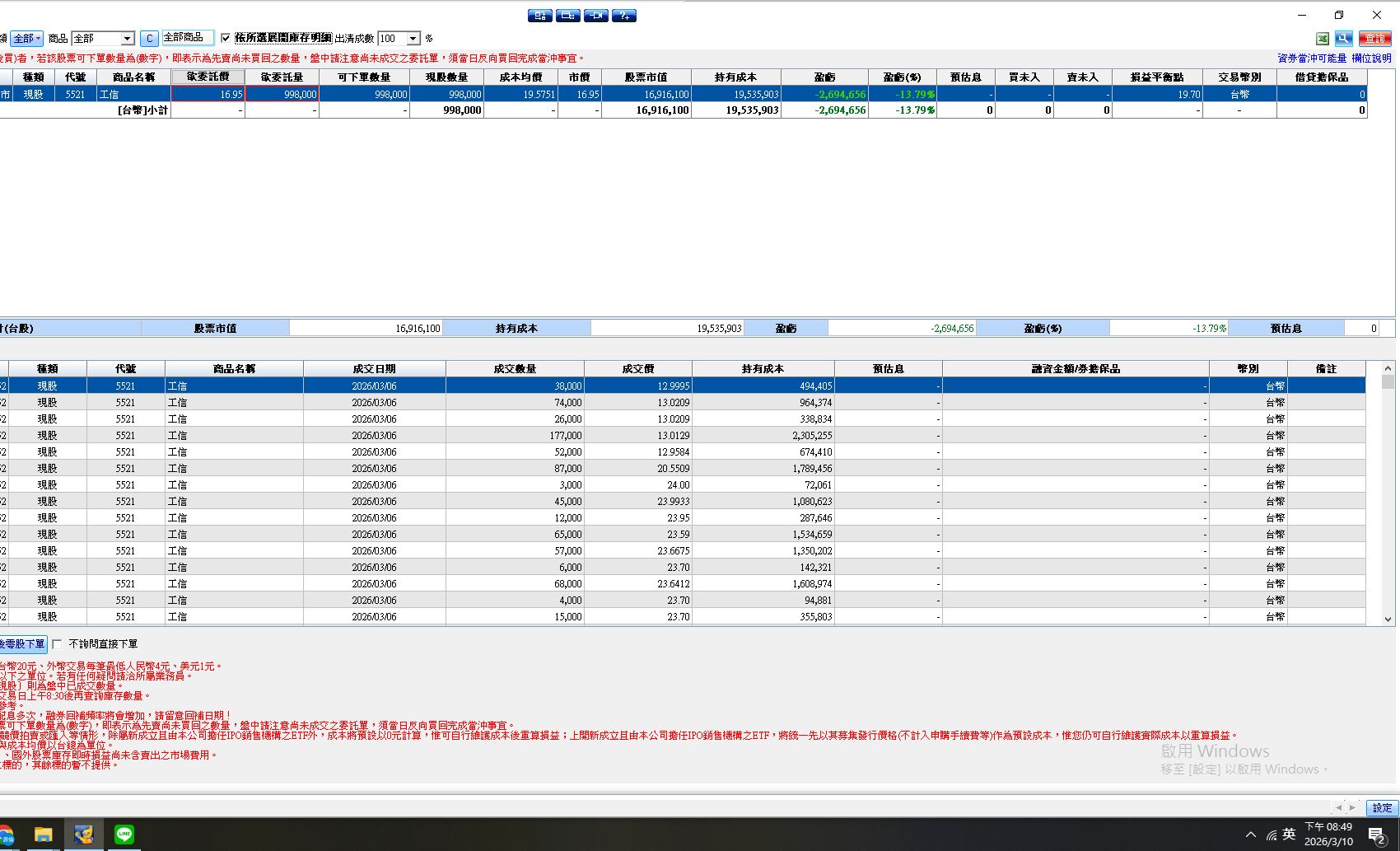 我有出借召回,所以庫存會看到成交日期是3/6,中間拿一半持股玩過隔日沖一次