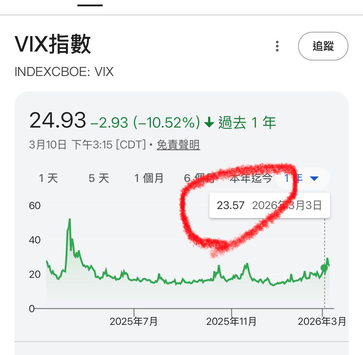 如果按著油價與VIX來看,3/3的VIX相同但油價更低,因此3/3的大盤比3/10便宜?!