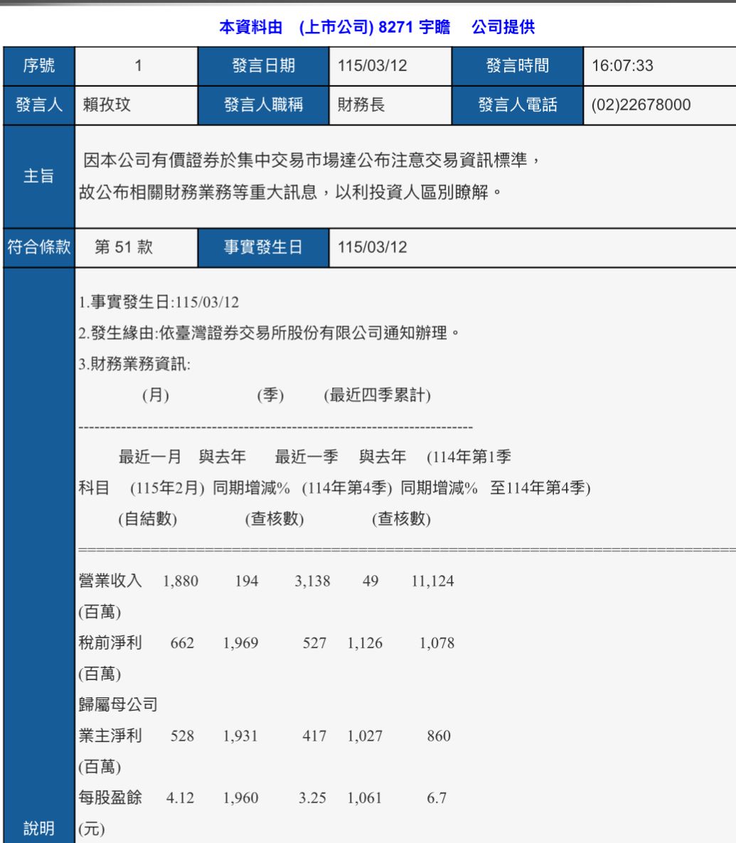 利率拉升到30%,EPS單季突破3元,今年二月單月EPS更突破4元,在未開獎前任誰說宇瞻