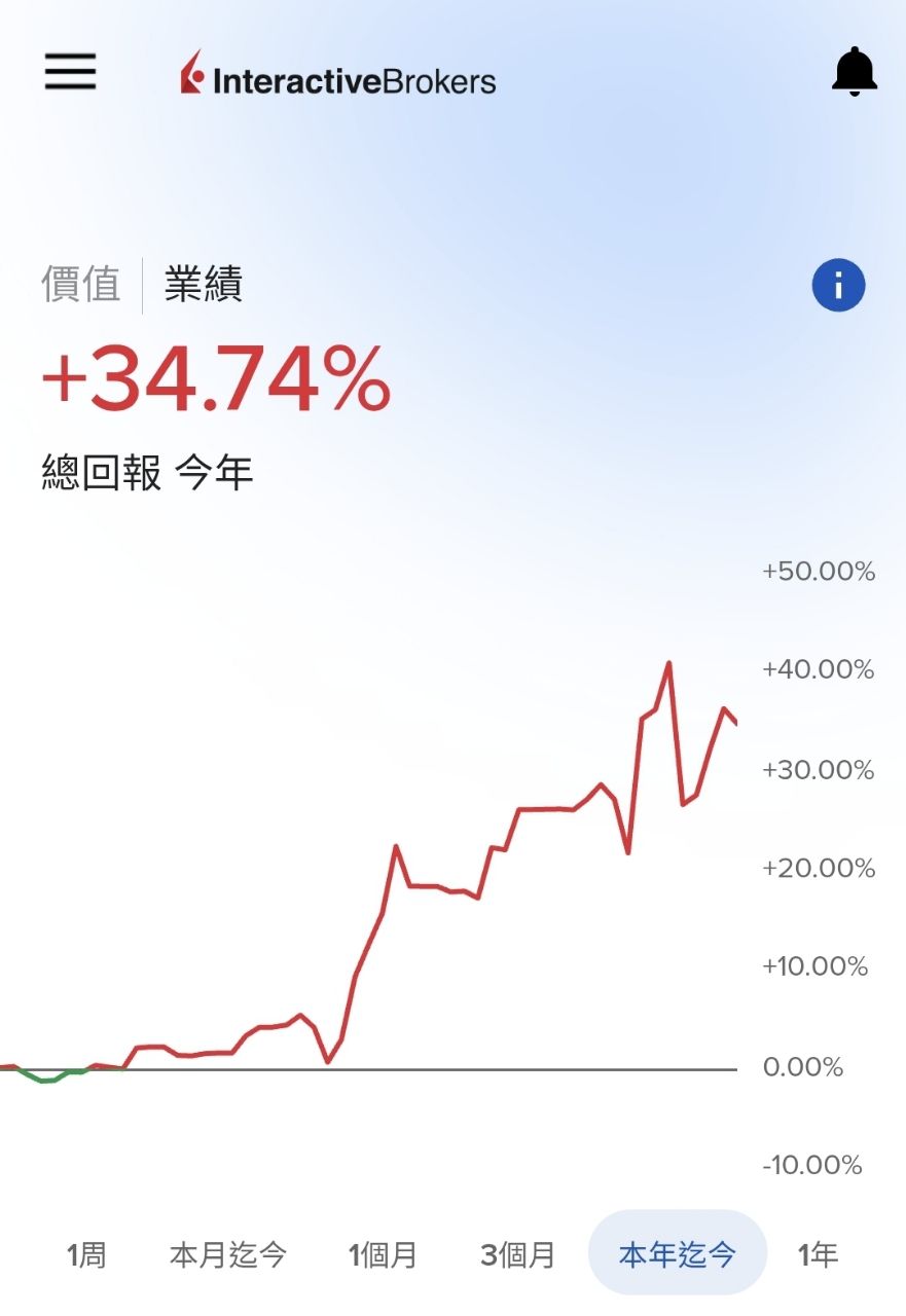 1、IB 的 YTD(年初至今)功能,可以真實呈現我的策略表現,反正這兩個帳戶的槓桿與