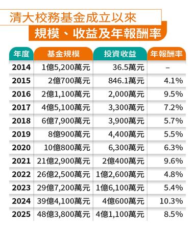 從5,000萬到48億元、連續11年維持正報酬…這是清華大學校務基金(永續基金)的成績