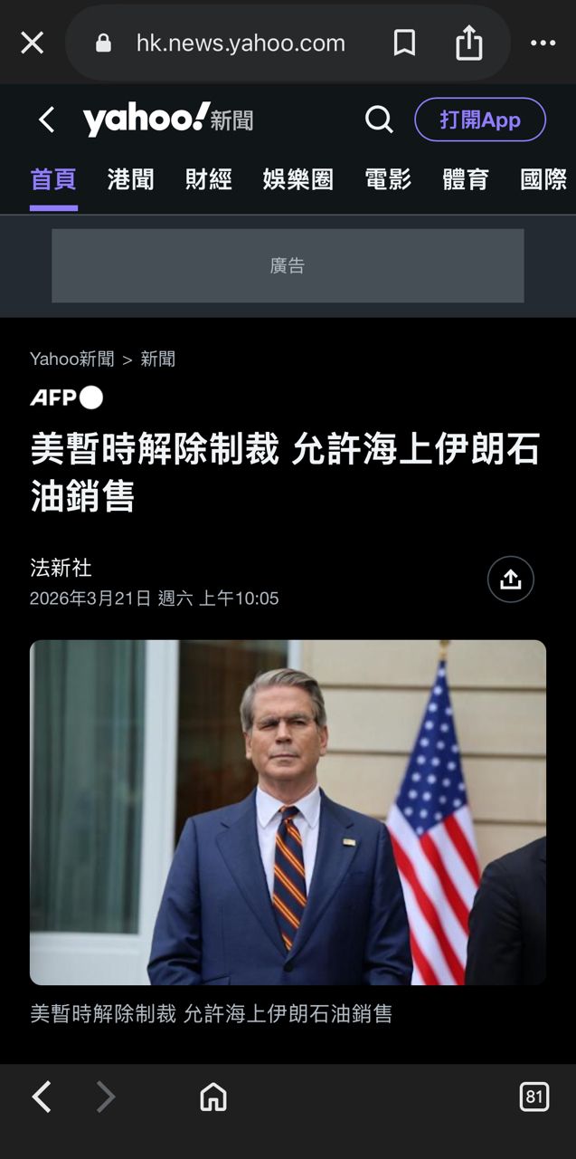 : 為緩解市場壓力,美國財政部長貝森特(Scott Bessent)透露政府正考慮進一步釋放