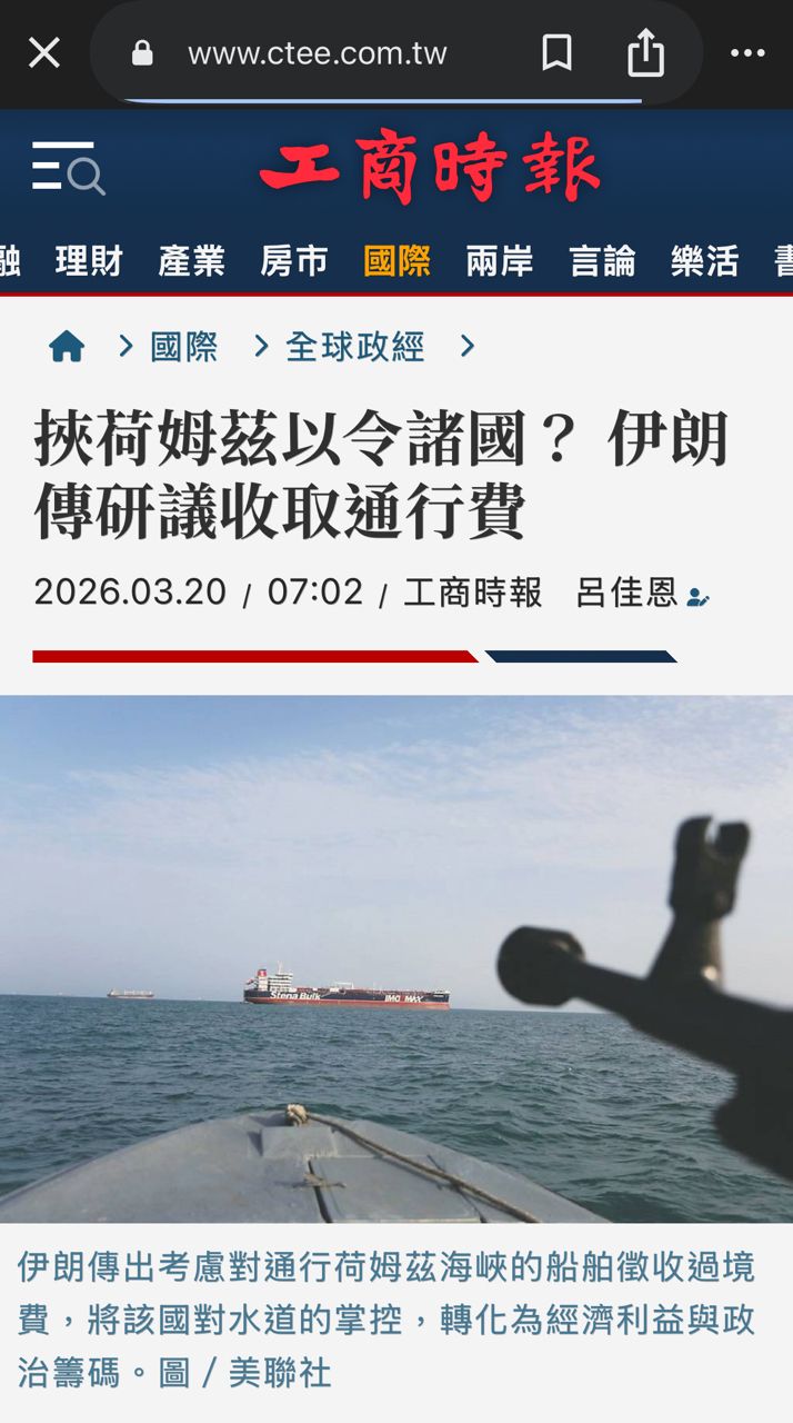 今天有新聞報出來伊朗允許日本通過荷姆茲海峽,會同意顯然是因為有利益交換